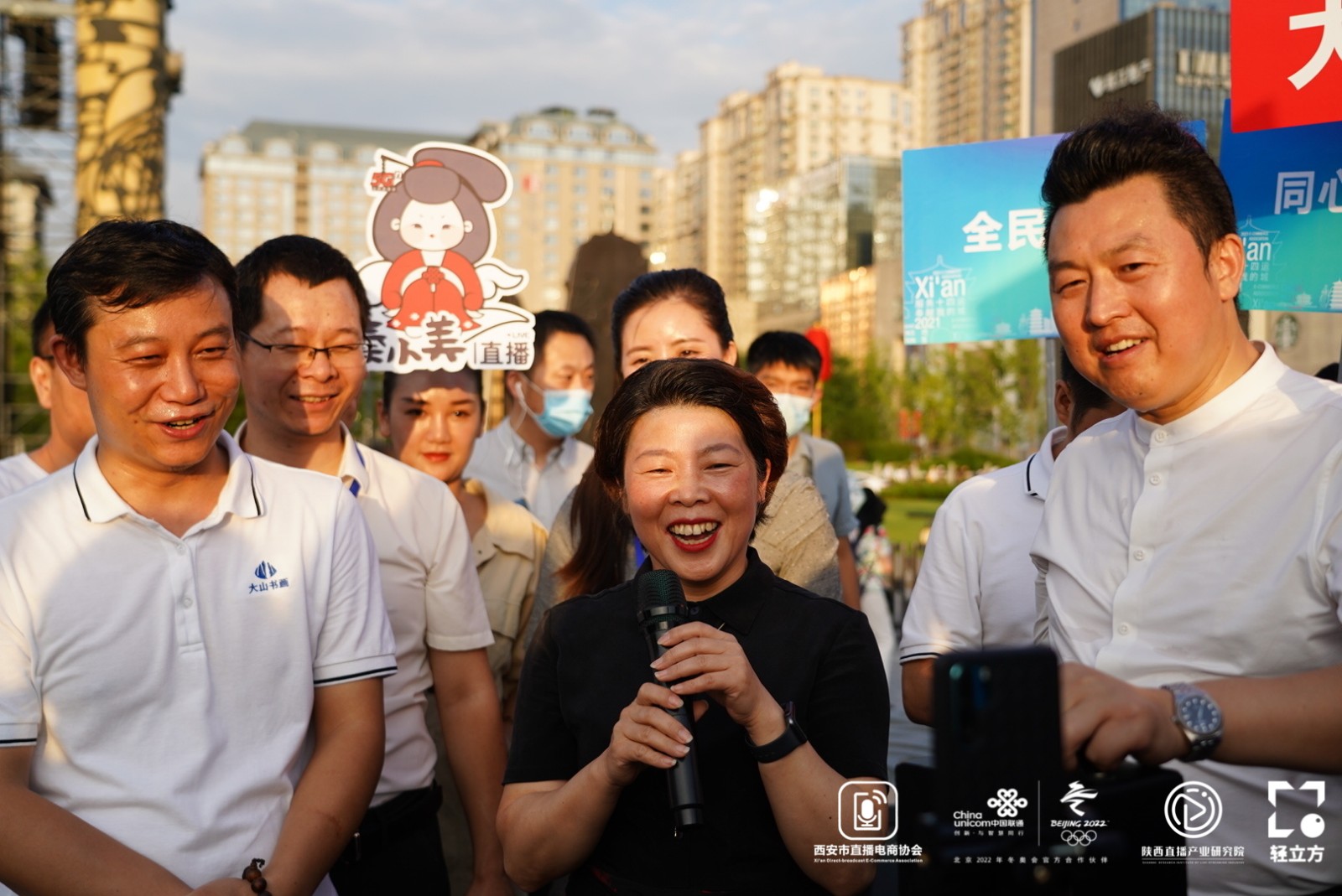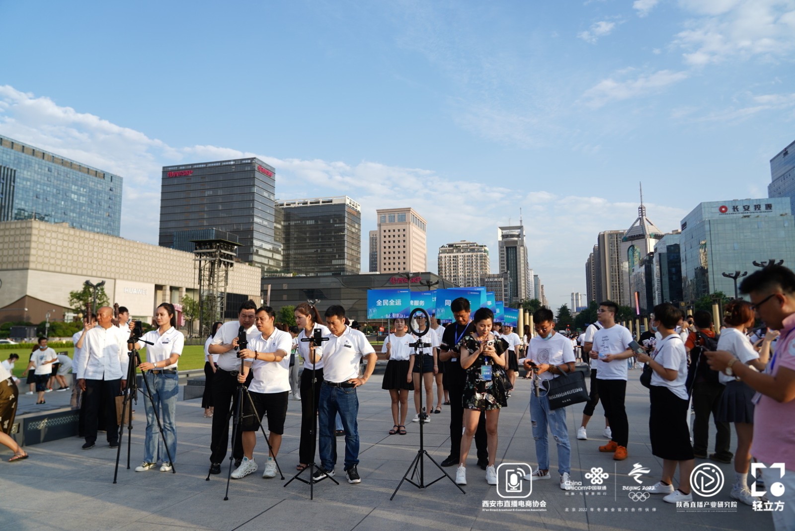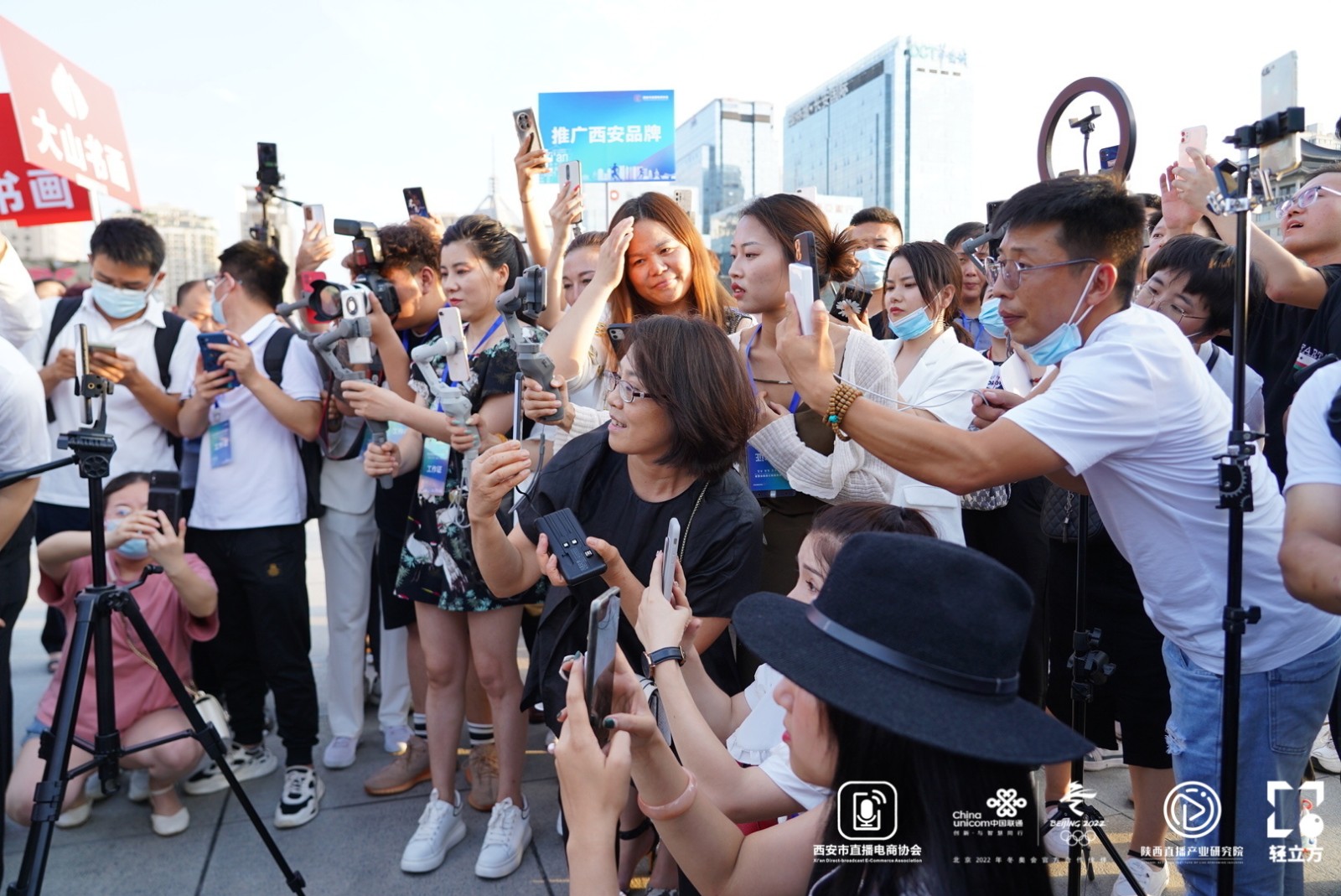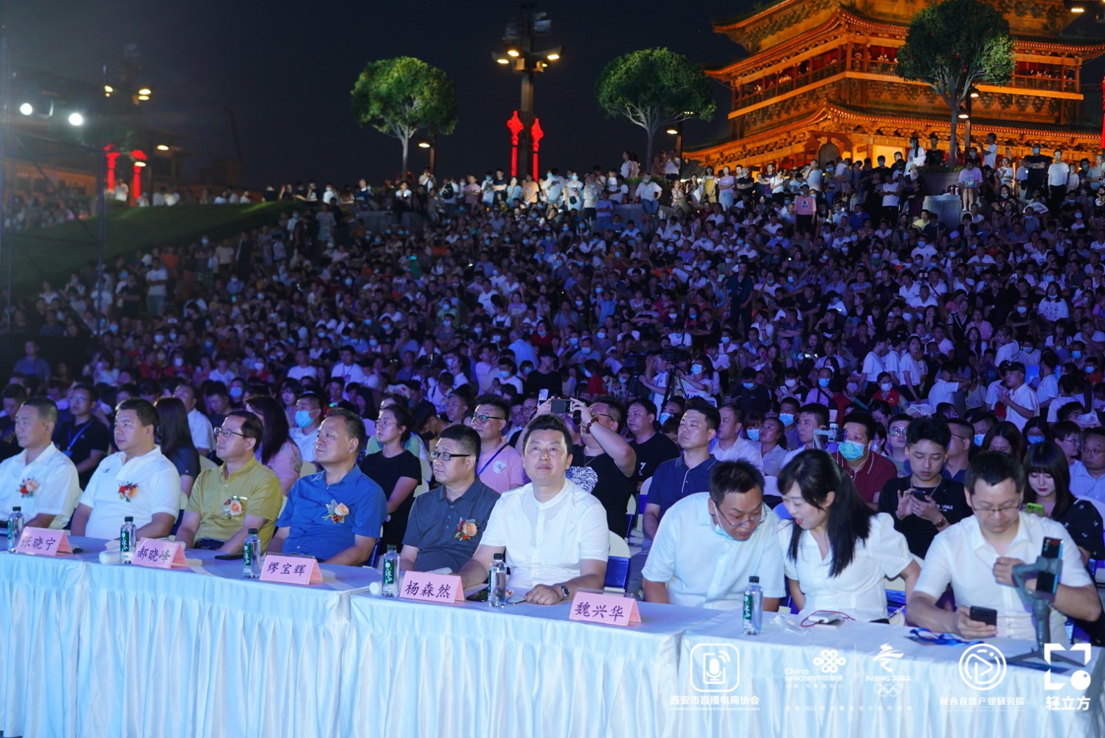 7月28日晚,西安首届直播之夜城市盛典在西安市钟楼世纪金花下沉广场举办。