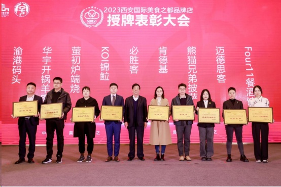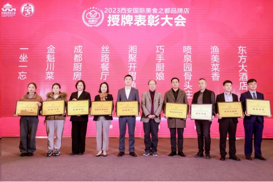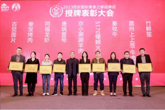 11月30日,2023西安国际美食之都品牌店授牌表彰大会在西安举办。西安市商务局、93家上榜品牌代表、业界专家等200余人参会。